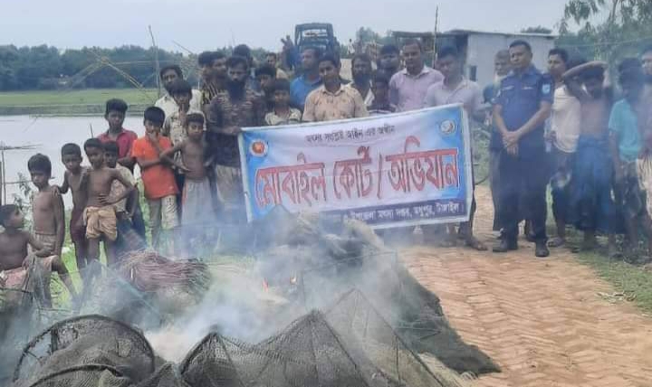 টাঙ্গাইলের মধুপুরে অবৈধ চায়না ও কারেন্ট জাল ধ্বংস।