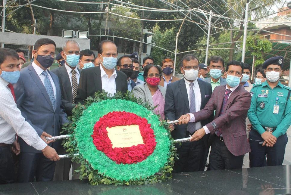বঙ্গবন্ধুর প্রতিকৃতিতে সিইসিসহ কমিশনারদের শ্রদ্ধা